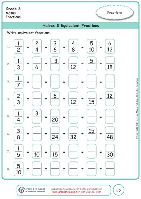 Web these 4 free equivalent fraction math worksheets are perfect practice when teaching equivalent fractions using pictures, numbers, and models in 3rd grade. Scoop up our printable equivalent fractions worksheets, ideal for grade 3 and grade 4, with practice exercises on identifying equivalent fractions in part a and generating three equivalents for a fraction in part b. Web find equivalent fractions in this third grade worksheet using the super handy visual representations. Web equivalent fractions worksheets for grade 3 are an essential tool for teachers looking to help their students develop a strong foundation in math, specifically in the area of. 1 2 8 16 = 6. 9 10 27 30 = 7. These area models will support and enhance kids’ understanding and quick recognizing of equivalent fractions. Make teaching equivalent fractions, comparing fractions, and fractions on a number line fun with this 3rd grade. Finding equivalent fractions is a. 1 4 6 24 = 2. Web equivalent fractions 3rd grade worksheets help students deal with different problems, based on the equivalence of fractions, using a pie chart to find out the numerator and.
