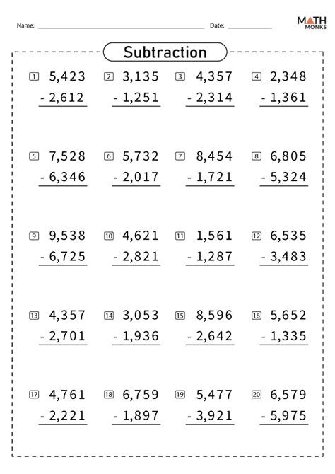 5 Digit Subtraction Worksheets