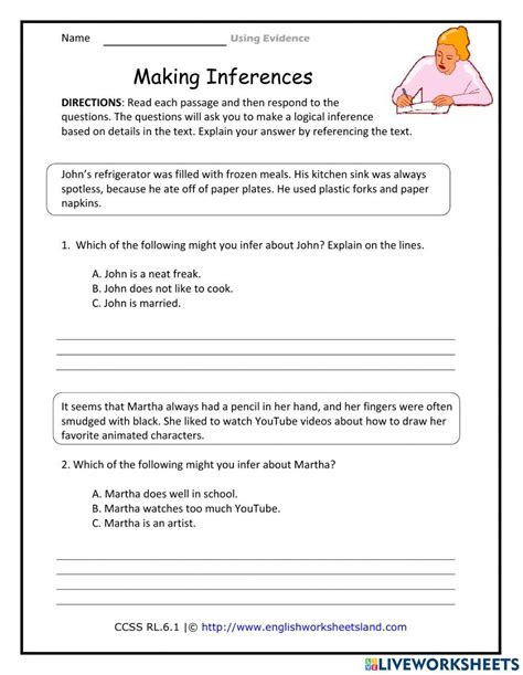 Each question will ask you to make a logical inference based. Worksheets are inference 6th grade, inference 6th grade, inferences work 6, inferences work 9, inferences, inferences, making inferences reading between the lines clad, inference riddles. Grade 2 conclusions and inferences practice. Grade 2 students also start to practice making inferences. Read each passage and then respond to the questions. Web many students have difficulty answering inferential questions. This is a great powerpoint i use to teach my students about inferencing. Some of the worksheets for this concept are inferences work 6, inference 6th grade, drawing inferences, grade 6. Discover a world of free printable reading & writing worksheets for grade 6 students, crafted by. 6th grade english language arts worksheets and answer key, study guide. Web these brilliant reading inference worksheets are great for helping your learners to practice reading between the lines, and inferring meaning.