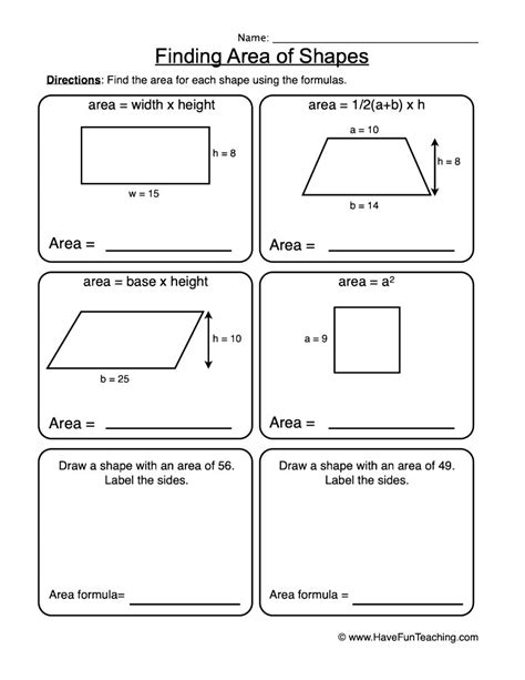 Web various area formulas are used to determine the area of various geometrical shapes. Web r v = 4/3 πr3 Web copy the example data in the following table, and paste it in cell a1 of a new excel. Web 9 best worksheets to practice calculating area and perimeter. Web area formula worksheet 4.8 based on 248 votes complete in app share this. Web both blank and filled in formula sheets for lateral surface area, total surface area and. Web area is the size of a surface! Web this bundle includes both a surface area and volume formula sheet for a rectangular. Web there are five layers to the foldable: Web geometry > area this cluster of area worksheets produces a measurable outcome and. Web formulas de área exercise.