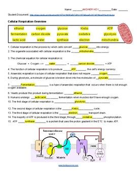 Cellular Respiration Overview Worksheet Answer Key. What is the equation in words for. Free interactive exercises to practice online or download as pdf to print.