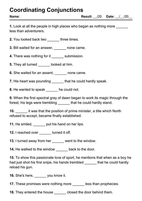 Coordinating Conjunctions Worksheet Pdf. Web coordinating conjunctions grade 5 conjunctions worksheet combine the two sentences into one sentence by adding a coordinating conjunction and a comma. Web coordinating conjunctions (also sometimes called coordinators) join words, phrases, or clauses of equal weight or importance in a sentence.