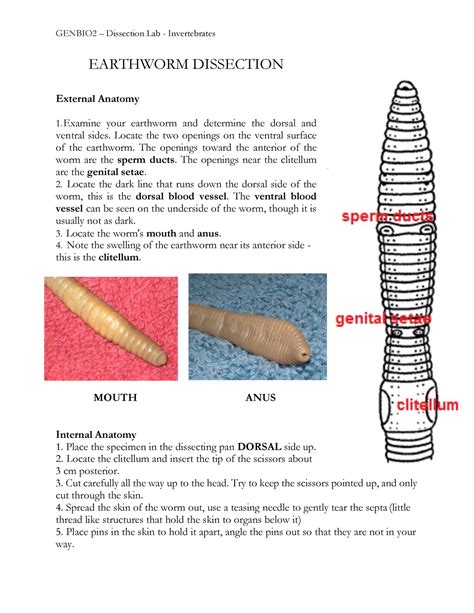 Dissection of the earthworm introduction: It is a segmented worm. Read entire lab instructions as a group 2. Web of 5 name _____________________________ date __________________ hr: In this lab, you will dissect an earthworm in order to observe the external and internal structures of earthworm anatomy. Place the earthworm in the dissecting pan. The earthworm is an invertebrate in the phylum annelida; Web earthworm dissection external anatomy examine your earthworm and determine the dorsal and ventral sides. Web earthworms are an inexpensive way to introduce students to dissections! Run your finger over the setae.