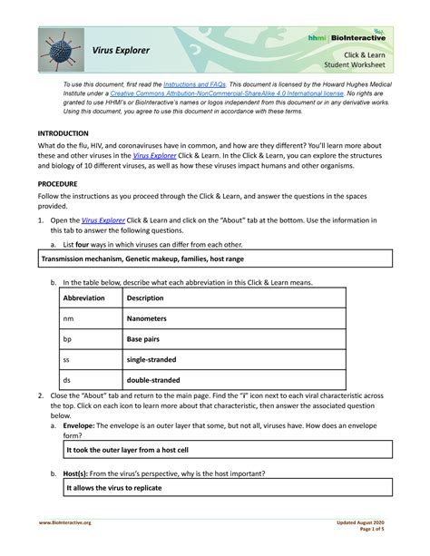 Hhmi Virus Explorer Worksheet Answer Key blissinspire