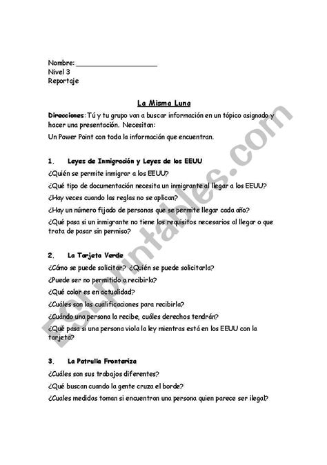 Web bajo la misma luna (movie viewing sheet) + grammar worksheet. Web movie questions in spanish & english versions for bajo la misma luna /under the same moon. Editable word, and pdf files. Web answer key la misma luna worksheet. Web view bajo la misma luna movie sheet done.docx from comm misc at clemson university. Web showing 8 worksheets for bajo la misma luna. Web bajo la misma luna (movie viewing sheet) + grammar worksheet. Add your owning answers, images, and more. Martha young teenage girl that helps smuggle carlitos across the border. Web la misma luna questions and answers quizlet. 4.7 (6 reviews) la parada de autobús.