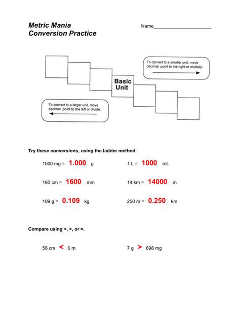 Metric Mania Conversion Practice Worksheet Answer Key. Try these conversions, using and ladder method. 160 cm = 1600 mm d.