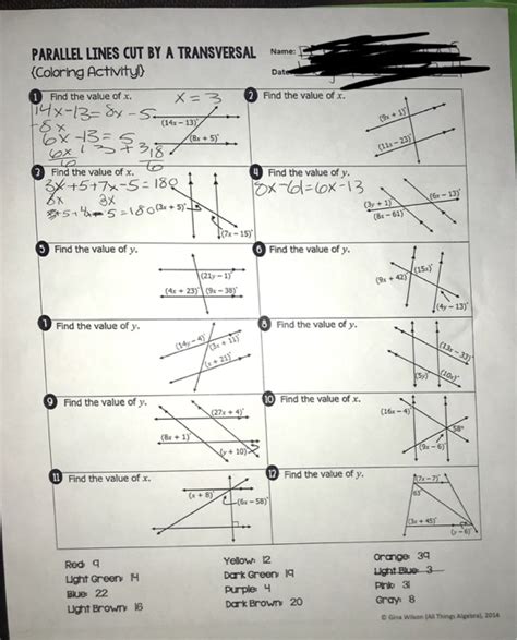 Parallel Lines Cut By A Transversal Worksheet Coloring Activity