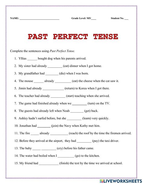 This past perfect exercise practises making the positive and. Web this free past perfect tense worksheet pdf for kids is an interactive handout that helps. Past and past perfect tense. Ad bring learning to life with worksheets, games, lesson plans, and more from education.com. Web we can use the past perfect to show the order of two past events. Past and past perfect tense. Ad bring learning to life with worksheets, games, lesson plans, and more from education.com. Web the past perfect (simple) tense is used to describe an action that has been completed. Web 101 printable pdf worksheets for the english grammar topic past perfect. Intermediate the past perfect is made from the verb had and the past participle of.
