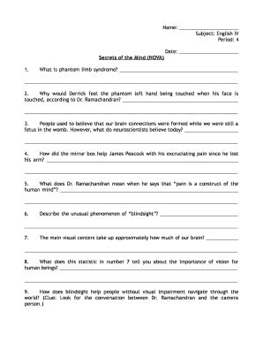 What is the result of this problem? Web wednesday, march 23, 2022 at 9 p.m. Scientists investigate the bizarre intelligence of slime. When amputees feel the vivid presence of a missing limb long after it goes. Signnow combines simplicity of use, affordable price and security in a. Web learn test match created by thesdkid10 terms in this set (18) what is phantom limb syndrome? Description of nova secrets of the mind worksheet. Web complete secrets of the mind nova worksheet answer key online with us legal forms. On kpbs tv + sunday, march 27 at 9 p.m. Web wednesday, march 23, 2022 at 9 p.m.
