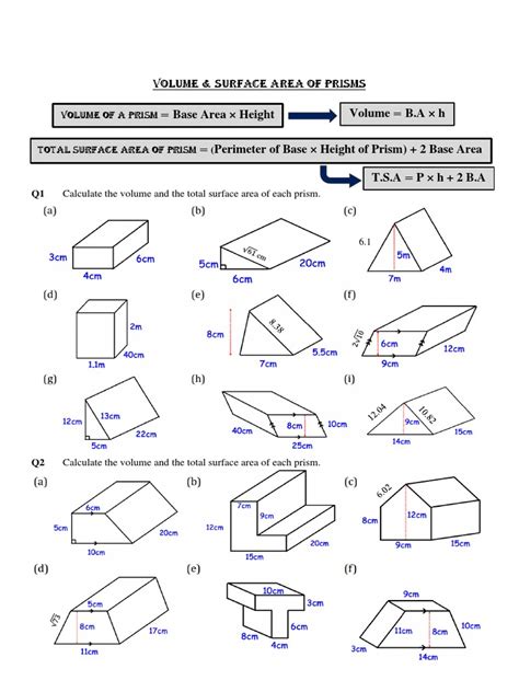 Surface Area Of Prisms Worksheet Pdf. The amount of space that a prism’s flat faces occupy in total. Easel by tpt versions are included in this distance learning ready activity which consists of 11 prisms (rectangular &