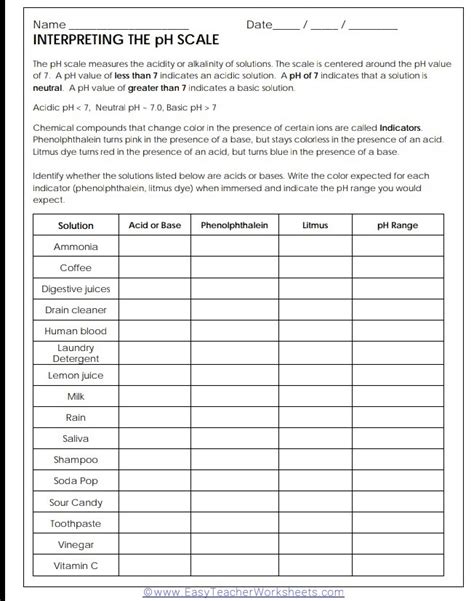 This set of guided notes, worksheet, and slides presentation allows middle school students to learn about and apply knowledge of the. Investigate how adding more of a liquid or diluting with water. Add them to your scale in the correct place. Question 1 of 3 which of the following is a characteristic of an acid? This can be used as an inquiry activity for students to explore the range of. Calculate the ph of a 0.0010 m naoh solution. Web this worksheet contains basic conceptual questions about acids, bases, and the ph scale.in this worksheet, students will answer questions about the following. Web students access teachers access live worksheets > english ph scale experimental (watch the video) id: Web this lab is an introduction to the ph scale with teacher notes, student worksheet, and an answer key. What is the ph of a 0.020m. This set of guided notes, worksheet, and slides presentation allows middle school students to learn about and apply knowledge of the.