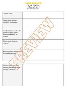 Web undercover boss worksheet you will be watching an episode of undercover boss. Welcome to esl printables , the website where english language teachers exchange. Web undercover boss worksheet you will be watching an episode of undercover boss. Students can learn more about a company and assess their pros and cons from viewing one of these episodes. Web this worksheet is versatile for any episode of undercover boss. This worksheet is versatile for any episode of undercover boss. Applied math, business, math grades: Web undercover boss worksheet 1. Answer the following questions that is based off the undercover boss video you watched in class. Why is it important for the leader of an organization to gain an understanding of all aspects of the company’s. Web list areas of the organization that needed professional improvement.